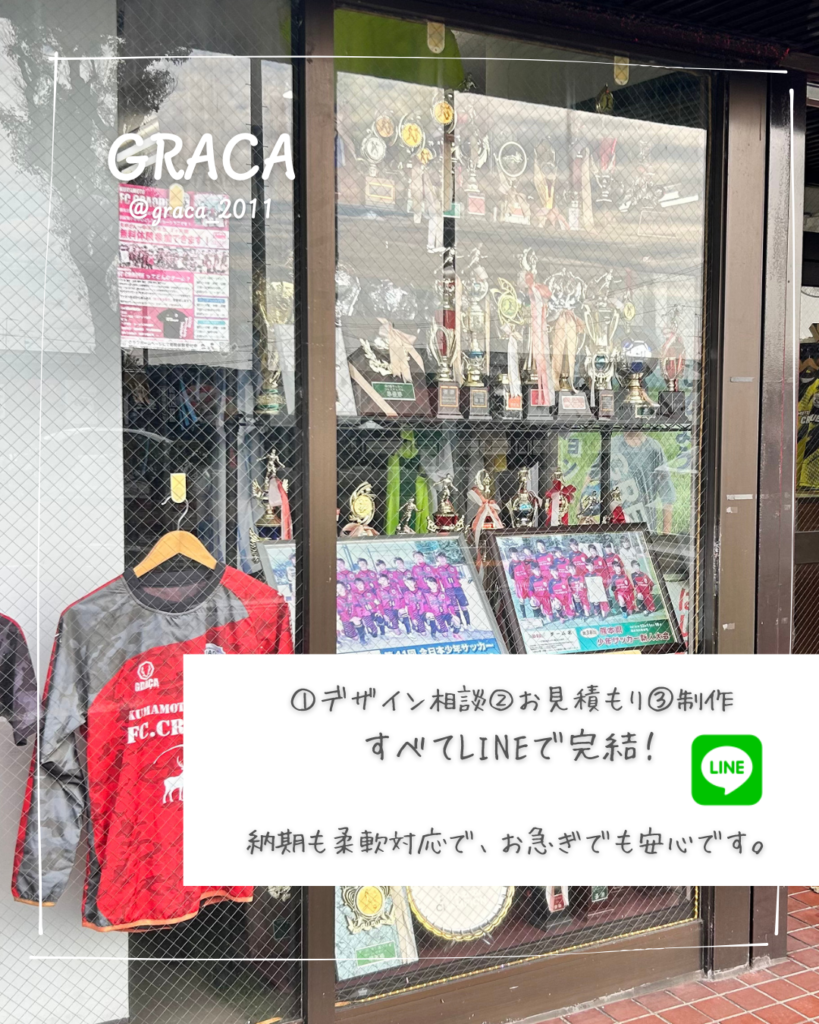 店舗へ何度も足を運ぶ必要がなく、隙間時間に連絡が取れるのが魅力です。納期についても柔軟に相談に乗ってもらえるため、急な大会やイベントに向けて準備を急ぐ場合も安心して依頼できます。